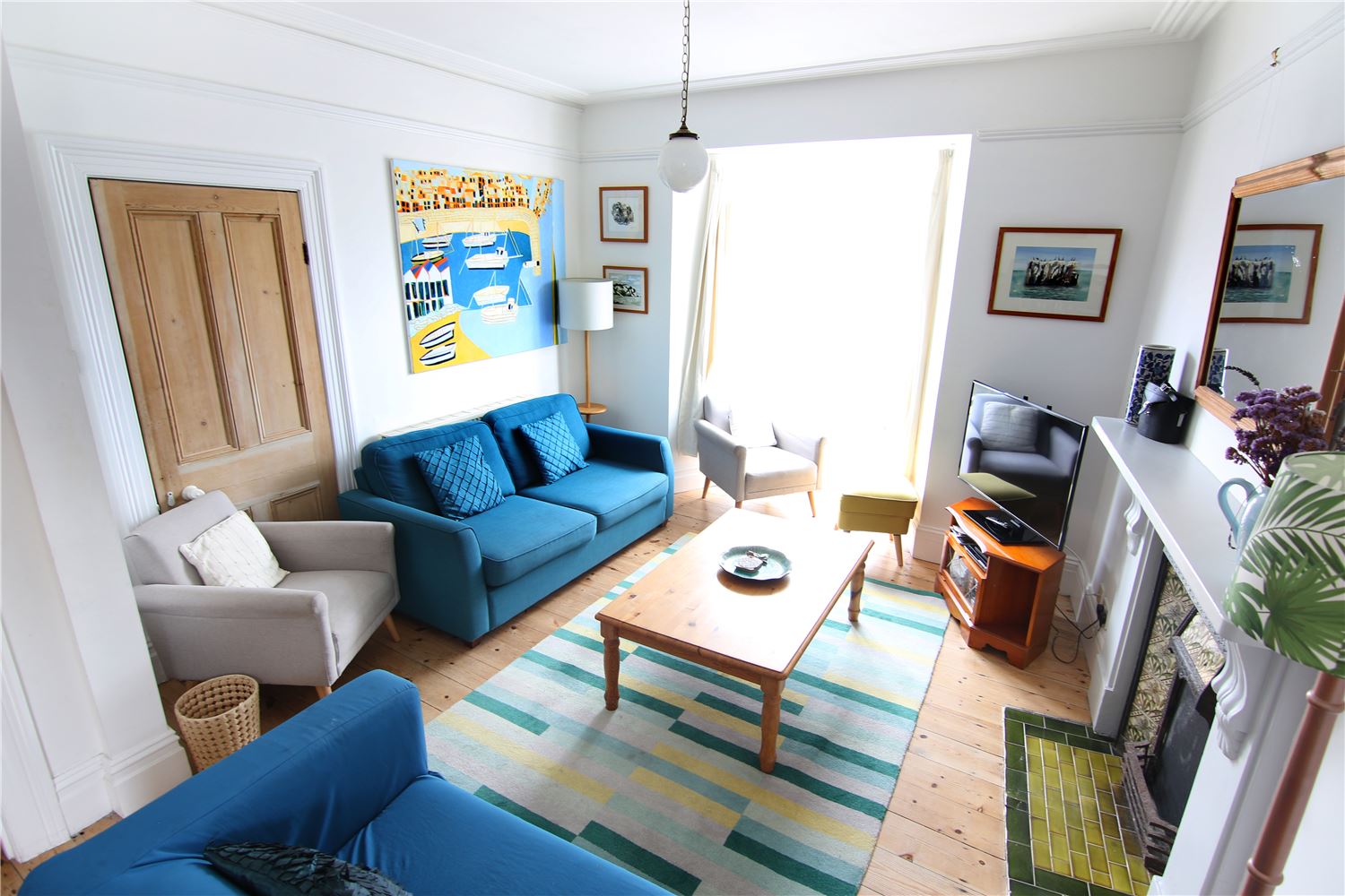 1 Atlantic Terrace is a light airy 3 storey house with stripped floors and white walls situated and the end of a small row of houses down a narrow lane. It has 4 bedrooms, 2 bathrooms and a large through living/dining room.